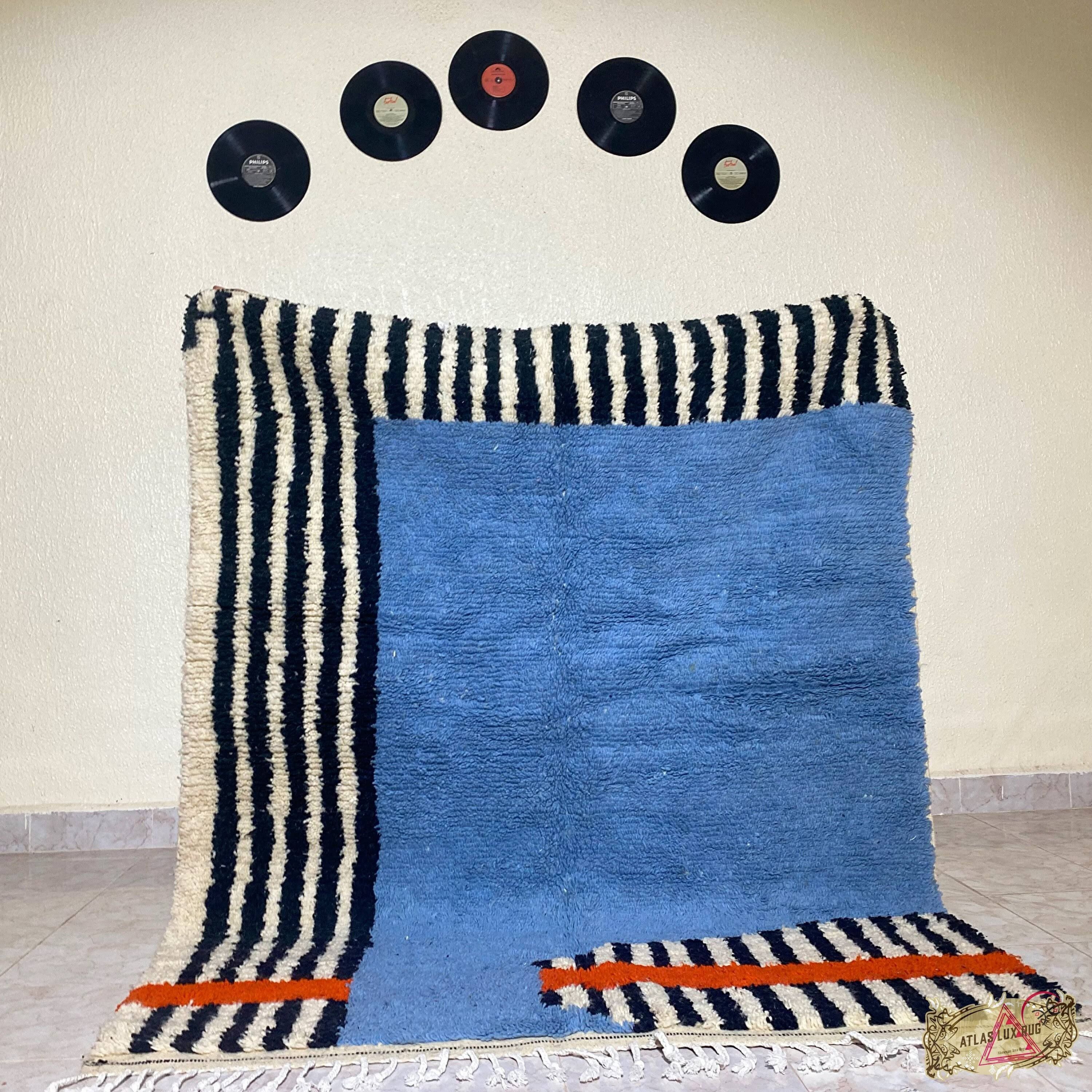 Gorgeous Beni Ourain Rug - blu moroccan rug, Handmade Berber Rug,blu large rug, Moroccan carpet , Custom Moroccan rug blu - Berber rug